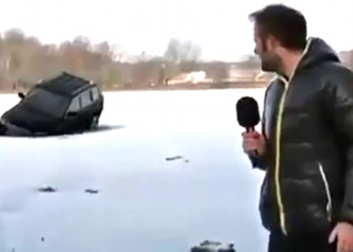 Wenn man den Gegenstand seines Nachrichtenberichts langsam unter Wasser sinken sieht, würde man wahrscheinlich den gleichen Gesichtsausdruck haben! Dieser Reporter war in einem Park in Kopenhagen und versuchte, über ein Auto zu berichten, das auf dem zugefrorenen See steckengeblieben war, als… Das besagte Auto brach durch die Dicke des Eises und begann langsam ins Wasser zu rutschen, bis es vollständig verschwunden war. Man kann sehen, wie sich der Gesichtsausdruck des Reporters in einem Moment von purem Enttäuschung zu völliger Akzeptanz ändert. Na toll, da geht sein Bericht!